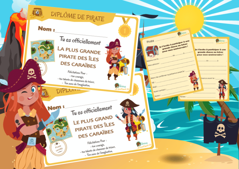 Pour marquer les esprits, ne négligez pas l’ambiance visuelle de la chasse au trésor. Pas besoin d’un décor sophistiqué : quelques touches bien pensées suffisent à émerveiller la troupe. Décorez la table, le gâteau, la pièce principale… et pourquoi pas, utilisez des kits à imprimer maison, avec étiquettes et accessoires aux couleurs du thème choisi. Nous développons d’ailleurs une gamme dédiée, pour personnaliser votre fête facilement.